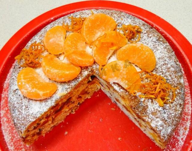 После этого украшаем сахарной пудрой, дольками мандаринов и цедрой апельсина. Можно вообще устроить огненную феерию-полить ромом и поджечь. Фантастическое зрелище!