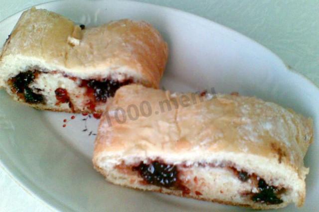 Мягкий, нежный с лёгкой кислинкой вишнёвый рулет из дрожжевого теста. Вкусно!