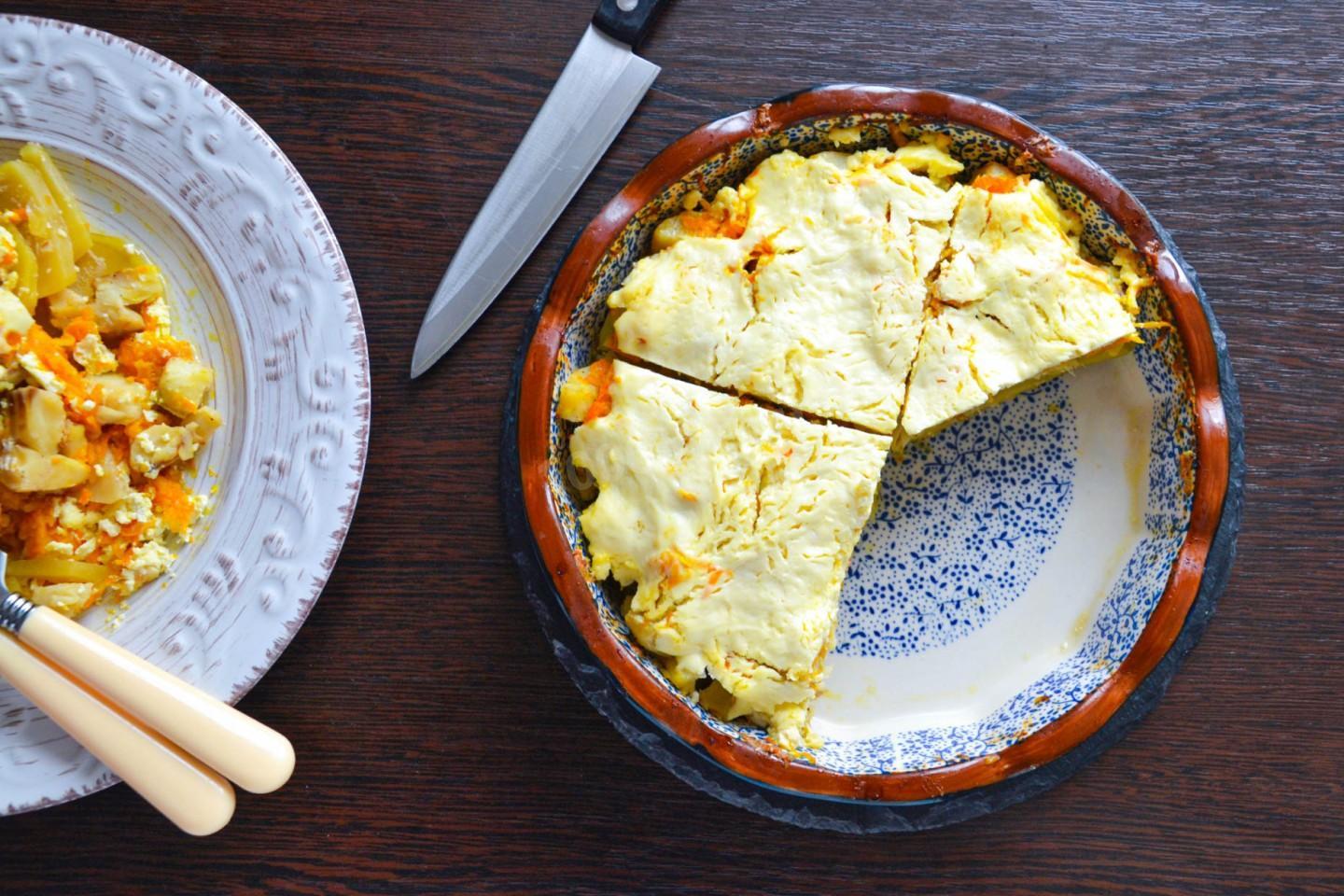 Оберните форму фольгой и поставьте в разогретую до 200°С духовку на 40 минут. Затем фольгу уберите и запекайте блюдо еще 5-7 минут, пока сметана не зарумянится. Готовую запеканку выньте из духовки, немного остудите и подавайте к столу. Приятного аппетита!