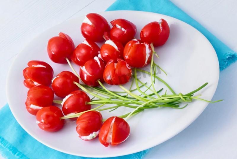 Салат тюльпаны из помидоров с плавленным сыром