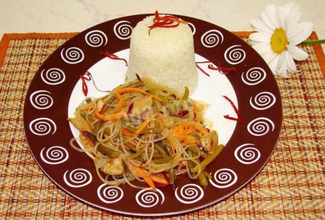 Креативный салат китайской кухни с оригинальным вкусом. Просто и быстро! Готовила салат фунчоза с мясом в первый раз, получилось почти как в китайском ресторане, хотя куда мне до него! В заправку нужно добавлять Вэйцзин - китайскую приправу в количестве 1,5 столовых ложки.