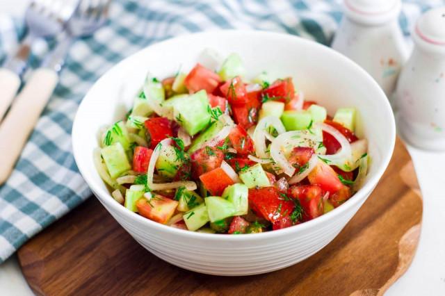 Салат из помидоров с огурцом и луком