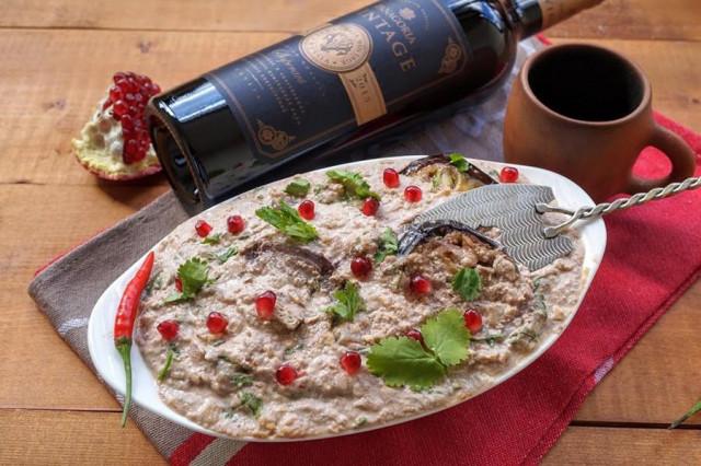 Подавать сациви из баклажанов можно в качестве закуски, а можно и как основное блюдо.