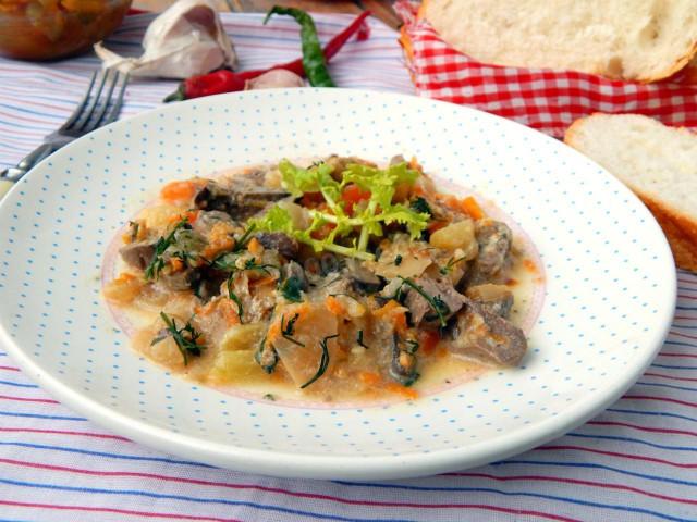 Сердечки в сметане с луком