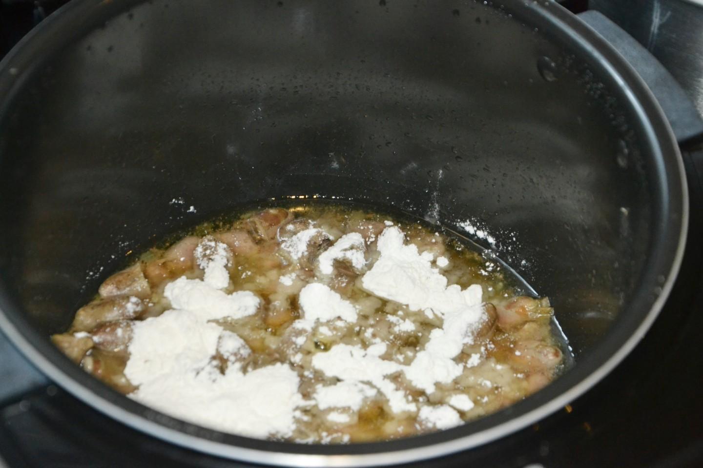 Затем сразу добавляем сметану и перемешиваем, у нас получается прекрасный соус. Если боитесь, что сметана свернется во время тушения, добавьте в неё чайную ложку муки, перемешайте, и только потом кладите в мультиварку. Тушим в течение 7-10 минут.