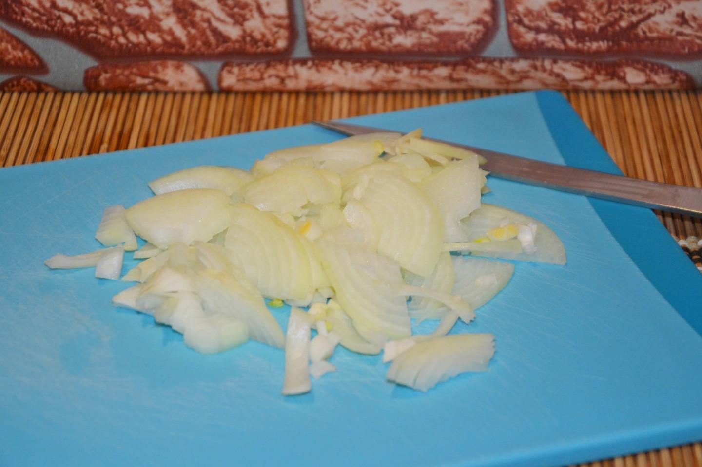 Как потушить сердечки в мультиварке? Подготовим продукты. Почистите лук.