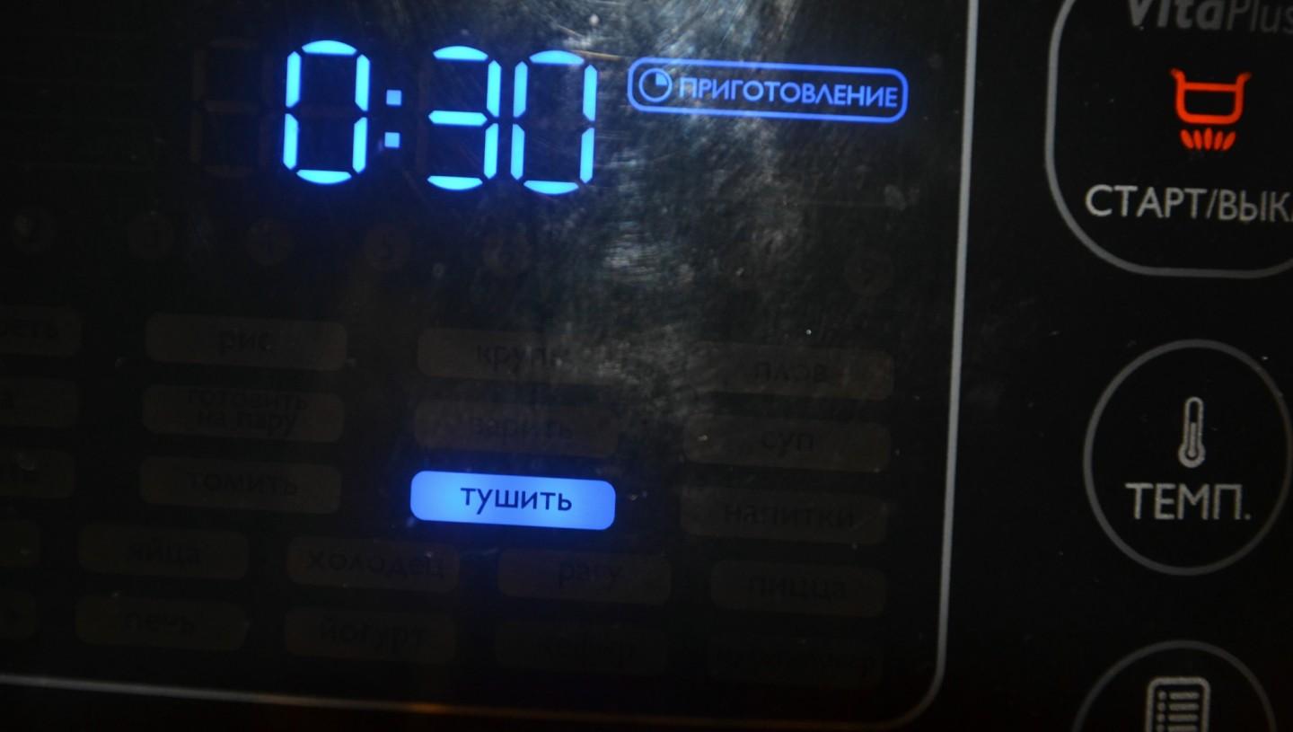 После этого включаем режим "тушение", закрываем крышку и даем потушиться сердечкам 30 минут.