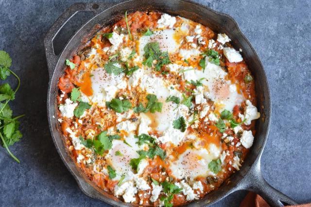 Яичница, но не обычная, а в дымном и пряном соусе! Шакшука на сковороде - это вкусно, сытно и оригинально! Считается, что шакшука попала в Израиль из Африки. Сегодня это одно из самых популярных блюд не только в Израиле, но и на всем Ближнем Востоке. Представляет собой яичницу, приготовленную в пряном томатном соусе с добавлением овощей. Часто в шакшуку также добавляют сыр фета.
