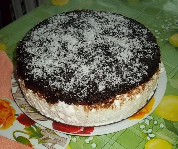 Разводим желатин холодной водой (полстакана воды). Взбиваем в миксере яичные желтки с сахаром, вводим размягченное сливочное масло, гашеную соду и муку. Осторожно перемешиваем, чтобы не образовывалось комочков. Делим на две равные части и выпекаем в духовке двумя отдельными коржами. На каждый у нас уйдет минут по 15. Далее взбиваем охлажденные белки с сахаром, бросаем щепотку соли, выдавливаем сок одного лимона, добавляем его же цедру и вводим лимонную кислоту. На водяной бане растапливаем замоченный в воде желатин. Начинаем взбивать белки и, не выключая миксер, вливаем тонкой струйкой слегка остуженный желатин. В ту же форму, где пеклись коржи, укладываем первый корж, заливаем горячим суфле. Даем слегка остыть, затем накрываем вторым коржом. Растапливаем на водяной бане шоколад, добавляем сливок и обливаем этой массой торт. Когда наша еда полностью остынет, вынимаем из формы (лучше брать разъемную) и обмазываем шоколадом стенки торта.