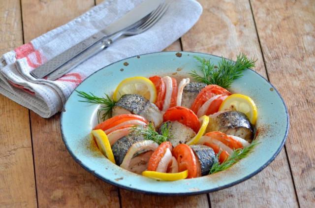 Скумбрия с помидорами запеченная в духовке с луком