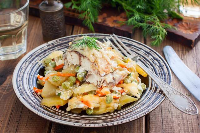 Вкусное сочетание овощей и рыбы, запечённых вместе. Скумбрия - одна из самых универсальных рыб, которую как ни приготовь, испортить её нельзя. Она прекрасна солёной, маринованной, жаренной или запечённой. Сейчас хочу предложить запечь скумбрию в фольге с овощами: картофелем, морковью, луком и зелёным горошком. Сразу получится полноценный вкусный ужин. А благодаря разноцветным овощам - ещё и очень красочным.