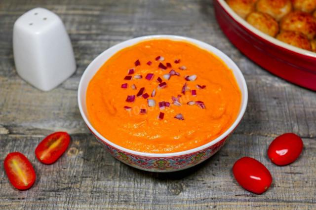 Но чтобы соус стал именно соусом, рекомендую содержимое сковороды переложить в блендер и измельчить его до однородной массы. Подавайте его к столу как теплым, так и остывшим. Приятного аппетита!