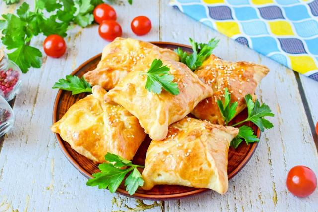 Слоеные конвертики в духовке с сыром курицей и картошкой