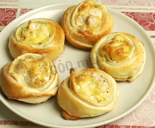 Слоеные ватрушки с филе индейки чуть остужаем и подаем.