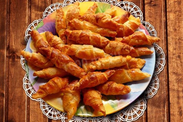 5. Противень выстилаем пергаментом, выкладываем на него трубочки и отправляем их выпекаться в духовку, разогретую до 200 градусов. Выпекаем до красивого румянца (это примерно 10-15 минут).