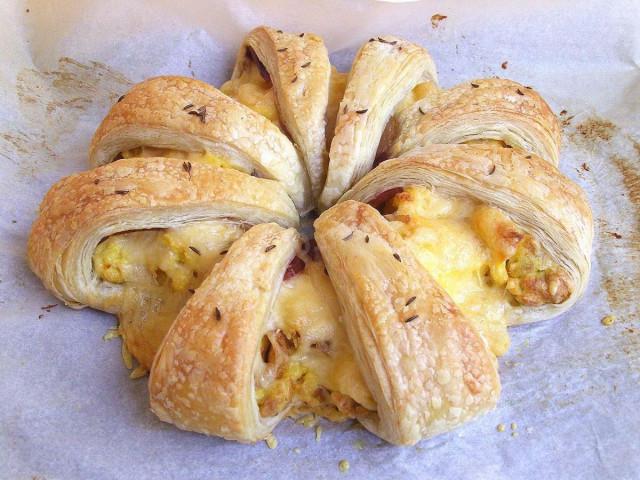 Вкуснейший пирог с хрустящей корочкой и соленой начинкой! Слоеный пирог с беконом и сыром - универсальный рецепт выпечки. Такой пирог можно подать в качестве закуски на семейный праздник или как дополнение к основному блюду вместо хлеба. А можно просто приготовить его к чаю или кофе на завтрак или ужин.