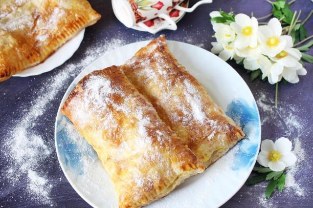 Хрустящие слойки с сочной и сладкой творожной начинкой. Вкуснейшая выпечка на десерт. Готовые слойки можно посыпать сахарной пудрой. Подавать с зеленым или черным чаем,кофе, какао, компотом, молоком, соком, киселем, кефиром и вообще любыми напитками как горячими, так и холодными. Побалуйте себя и своих близких слойками, которые не могут не понравиться.