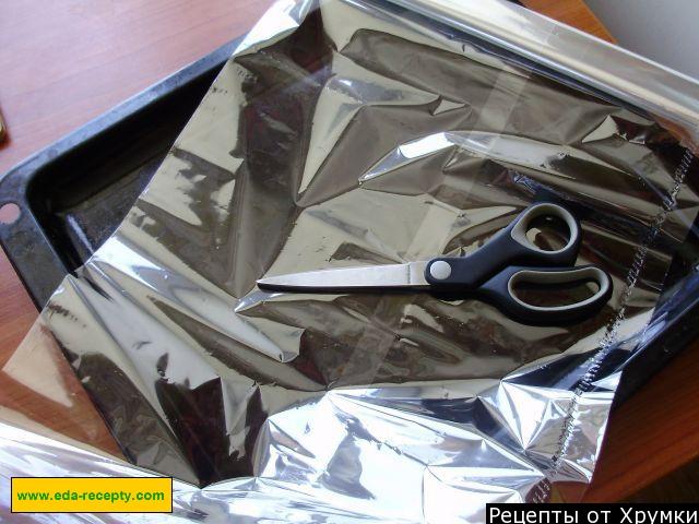 Готовим форму и рукав для запекания, отрезав кусочек нужного размера.