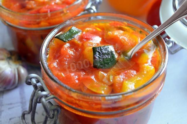 4. Горячее овощное соте раскладываем в стерильные банки, закатываем жестяными крышками. (банки предварительно стерилизуем в микроволновке, в духовке, или над паром, а крышки обдаем кипятком).