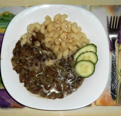 Такой соус с грибами замечательно идет с картофельными крокетами, с овощными котлетами, к макаронам, гречке или пюре.