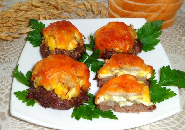 Вкусные котлеты с аппетитной корочкой, легко готовить! Стожки из печени с фаршем и сыром – это интересное в приготовлении блюдо. За основу берется лепешка из мясного фарша. Сверху на нее укладывается обжаренный лук, вареные яйца, сырой картофель и сыр. Запекаются стожки в духовке на противне до золотистой корочки. А подавать к столу их нужно в горячем виде. Так как в составе котлет присутствует картошка, то на гарнир можно приготовить отварную крупу по вкусу. Допустим, с мясом отлично сочетается рис или булгур.
