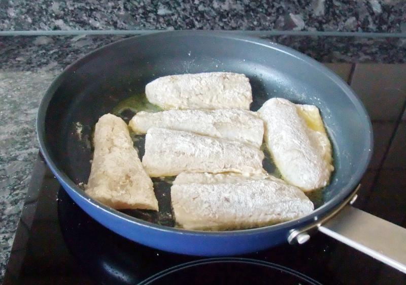 Судака нарезать на порционные куски, обмазать специями, обвалять в муке и обжарить с обеих сторон.