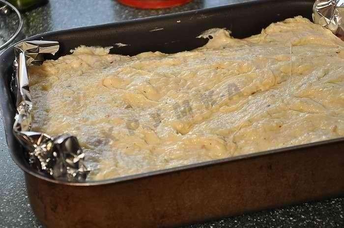 Сверху залить мясо сырным соусом. Запекать при 180*. А вот время приготовления будет зависеть от мяса. На запекание уйдет около часа, в зависимости от духовки. В конце запекания снизить температуру духовки до 150*. Если корочка начнет подгорать, то ее нужно прикрыть фольгой.