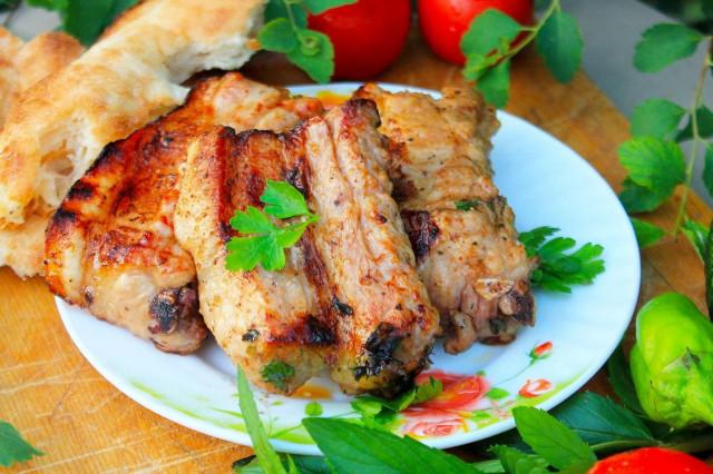 Как сделать свиные рёбрышки на мангале на решётке? Первым делом подготовьте мясо. Рёбрышки должны быть свежие, тогда готовое блюдо получится невероятно нежное и сочное. Если у вас мясо из заморозки, то его следует заранее вынуть из морозильной камеры и разморозить при комнатной температуре. Рёбра ополосните под проточной водой и обсушите бумажными салфетками.