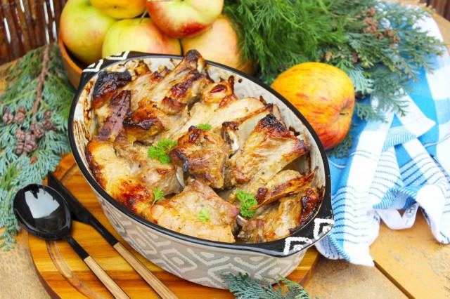 Свиные рёбрышки с яблоками и мёдом в духовке