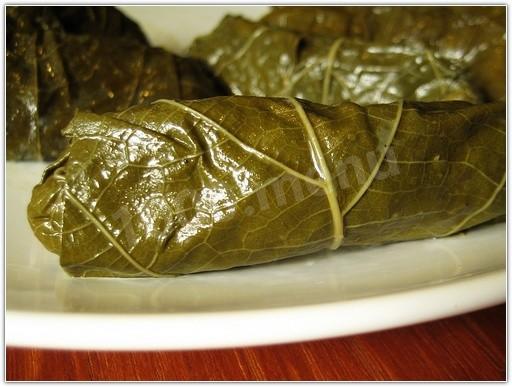 Берем нежирную мякоть баранины, разрезаем на небольшие куски и пропускаем через мясорубку. Отвариваем рис, не доводя его до готовности. Мелко нарезаем лук. Ф мясной фарш добавляем – рис, лук, мяту, базилик, майоран, соль и перец. И все это тщательно перемешиваем. Если у нас свежие листья винограда, то заливаем их кипятком на две-три минуты. После чего удаляем черешки. Если листья консервированные, то в кипяток их кидать не нужно. Они уже готовы.