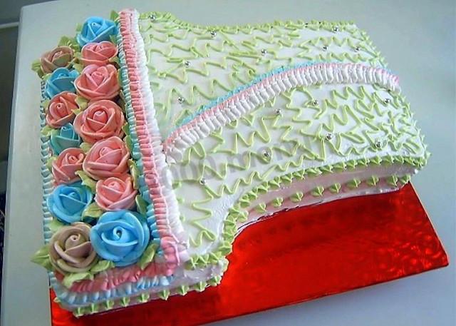 С помощью тех же пакетов и насадок 'розочка' и 'листик' украсить торт цветами. Цветы круговыми движениями наносить лепесток за лепестком.