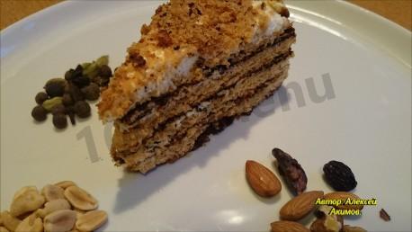 Намазываем коржи и собираем торт. Один корж оставляем для посыпки. Убираем в холодильник на 6 часов.