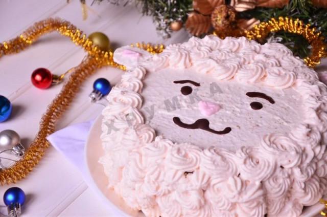Симпатичная овечка хорошо будет смотреться на новогоднем столе. Привет всем. Думаю, что уже многие знают, что 2015 год - это год Овцы или Козы. Поэтому предлагаю приготовить Вам симпатичный торт в виде овечки, а точнее в виде мордашки. Если честно, то сначала планировала приготовить торт с полноценной овечкой и даже подумывала украсить её мастикой, но потом подумав сколько времени уйдет не только на приготовление компонентов, но и на украшение, да и на покупку продуктов (например красителей, выемок для вырезании мастики), идею эту отвергла. Несомненно, украшена мастикой овечка получилась бы намного симпатичней, но я решила предложить вам более легкий вариант приготовления, ведь новогодние праздники - это веселье, хорошее настроение, встреча с близкими, а не сутки напролёт одна готовка. Поэтому очень надеюсь, что вам понравится милый тортик, который можно украсить всего за 30 минут, а то и того меньше. Торт состоит из обычного бисквита, который можно приготовить самостоятельно или купить в магазине. Для внутренней части я приготовила заварной крем с добавлением кокосовой стружки - получилось очень ароматно. Вы же можете использовать масляный, сметанный крем или просто взять немного больше взбитых сливок. Бисквит я пропитывала сиропом на основе мандаринового сока. Он придает совсем легкую кислинку и, что как не мандарины использовать в Новый год:) Для того, что бы украсить торт вам потребуется только кондитерский мешок или шприц, насадка в виде звездочки, два плотных пакета, желание и хорошее настроение.