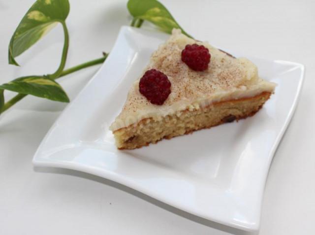 После того, как бисквит остынет, его можно разрезать на два коржа и смазать джемом или кремом. Сверху торт на кефире посыпаем сахарной пудрой.