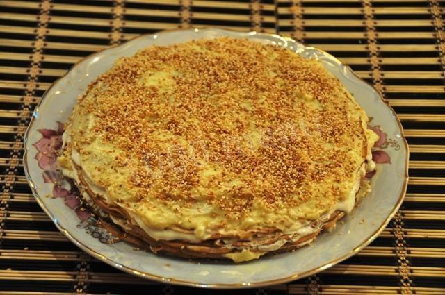 Торт из блинов на кефире с заварным кремом