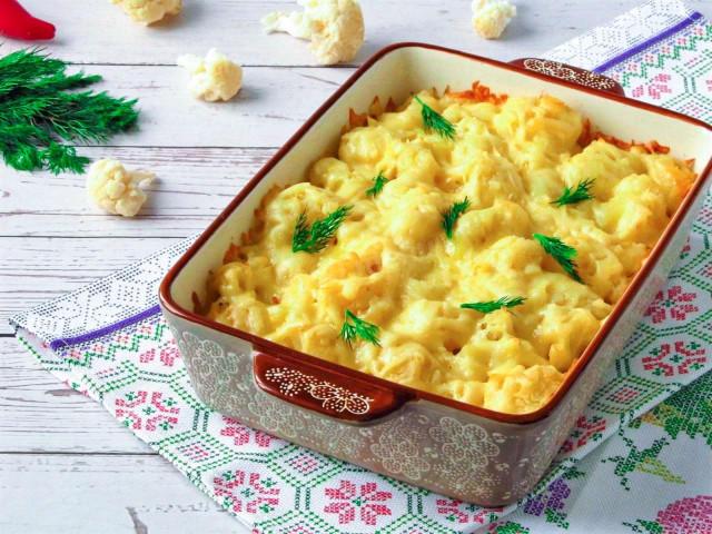 Запекайте цветную капусту с мясом в разогретой до 180 градусов духовке в течение 10-15 минут, чтобы сыр полностью расплавился. Точное время и температуру запекания определяйте по своей духовке. Подавайте блюдо в горячем виде. Приятного аппетита!
