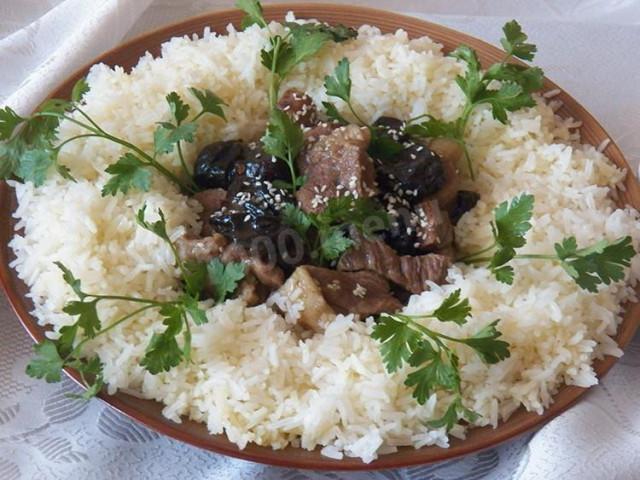 Баранину с черносливом можно украсить кунжутом и петрушкой