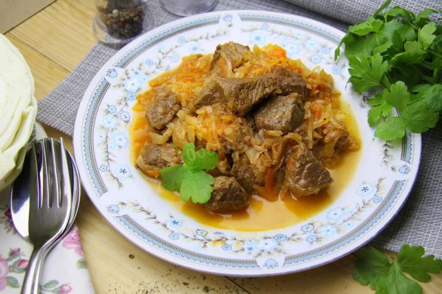Тушеная капуста с мясом в кастрюле