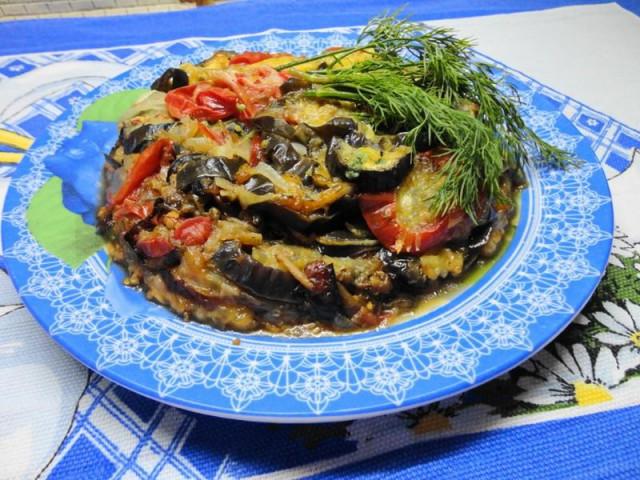 Тушеные баклажаны с помидорами в мультиварке