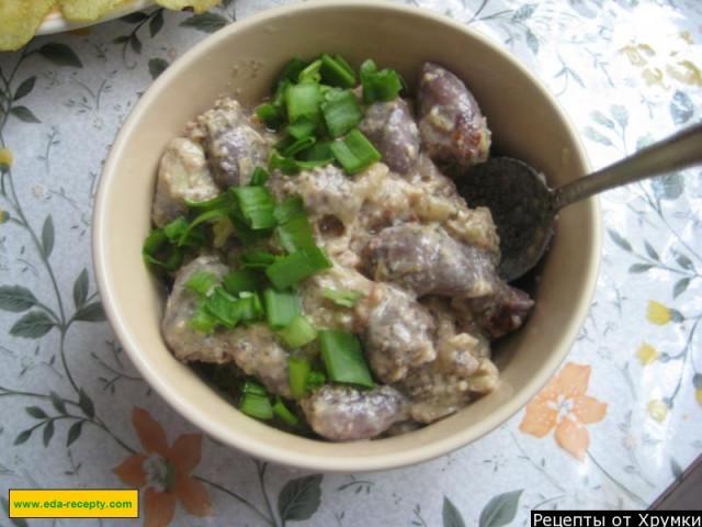 Моим домашним нравятся сердечки тушеные в сметане, кулинарный рецепт которых достался мне от мамы.