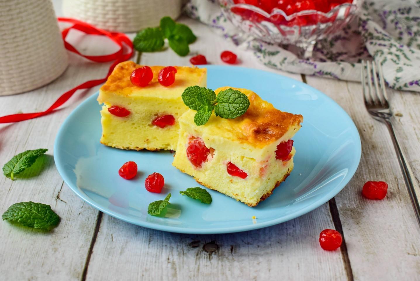 Творожную запеканку нарежьте на порционные кусочки, разложите по тарелкам и подавайте к столу. Приятного аппетита!