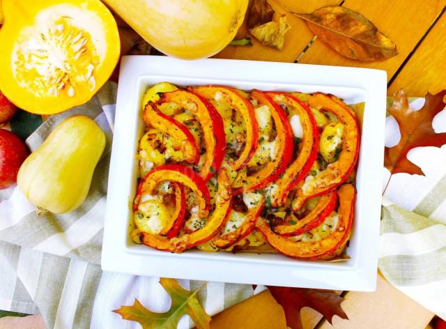 Как вкусно запечь тыкву с картофелем в духовке? Сделать это очень просто, первым делом подготовьте все продукты. Для приготовления блюда лучше использовать тыкву Хоккайдо. Этот сорт имеет сладковатый нежный вкус и мускатный аромат. У тыквы тонкая кожица, поэтому запекать мы будем овощ не очищая от кожуры.