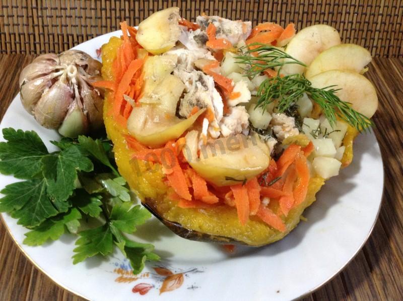 Тыква запеченная с курицей и яблоками