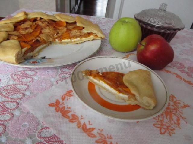 Осенний вариант ароматной тыквенной галеты. Вкусно и просто! Эта галета с тыквой легка в приготовлении. Нужно всего лишь простейшее тесто без дрожжей и начинка. Выпечка с тыквой тем и хороша, что тыкву можно класть как сырую, так и тушенную с небольшим количеством масла. Можно приготовить этот десерт с добавлением кураги вместо яблок, будет тоже не менее вкусно. Курагу предварительно размочить и мелко порезать. Словом, можно вносить свои "изюминки" в начинку.