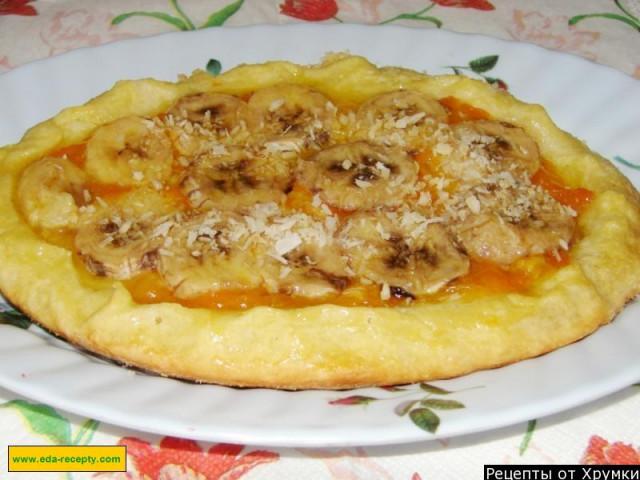 Варим сахарный сироп из указанных ингредиентов, снимаем с огня и быстро укладываем в него нарезанные дольками бананы. Оставляем примерно на час, чтобы фрукты хорошенько пропитались. Дно готовой корзинки обмазываем джемом, а сверху красиво выкладываем бананы. Все, наш банановый торт готов, можно лакомиться.