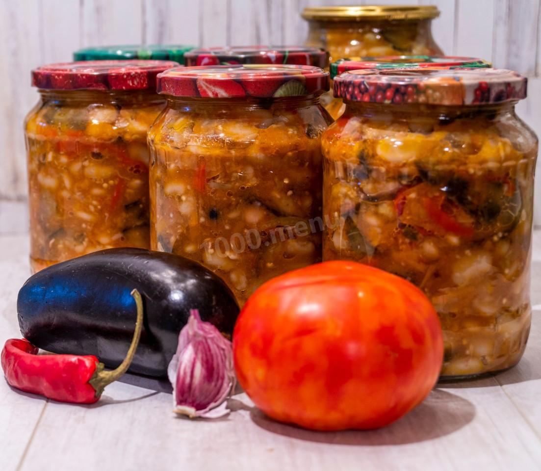 Закуска на зиму из баклажанов с фасолью и болгарским перцем