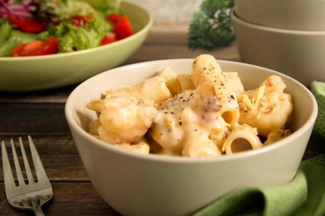 5. Макароны отвариваем согласно инструкции на упаковке, затем откидываем на дуршлаг, обдаем холодной водой, возвращаем в кастрюлю.