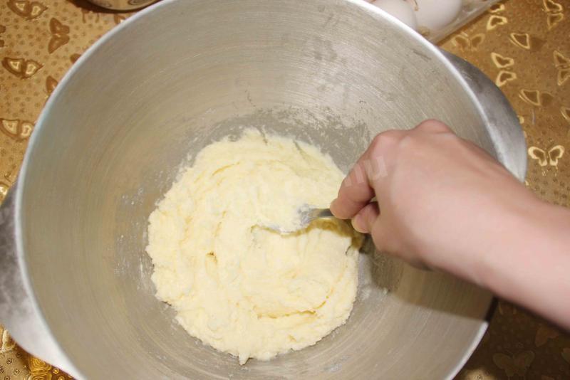 После этого соединяем получившуюся массу с масляно-яичной смесью.
