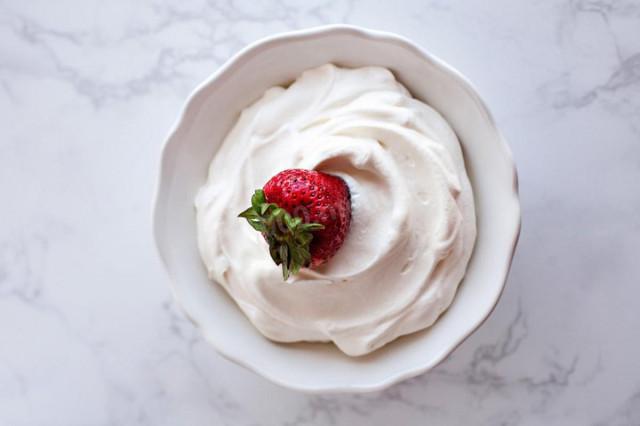 5. По желанию добавить в уже взбитый крем немного коньяка (можно заменить ликером) и снова взбить крем до пышности.