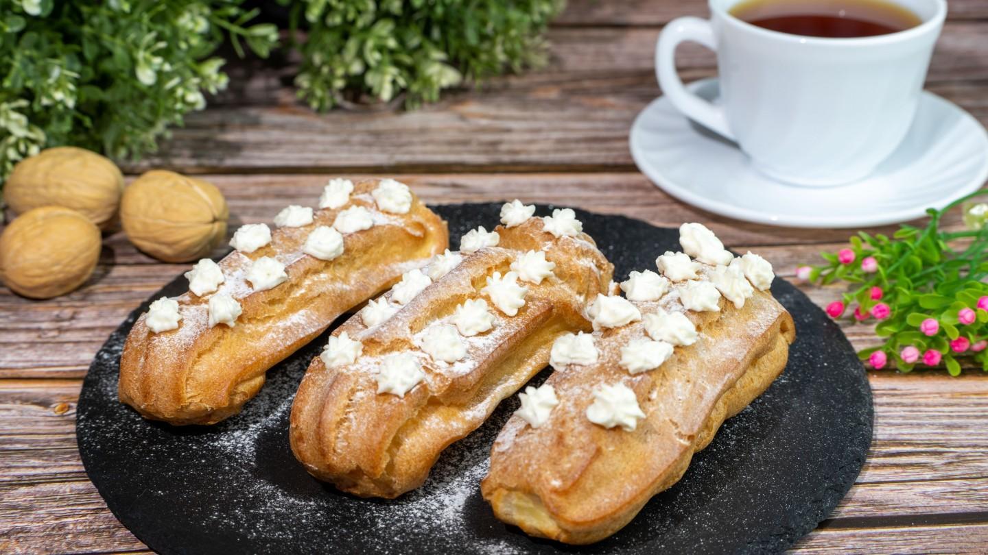 Сладкое кондитерское изделие из доступных продуктов! Довольно простой и быстрый рецепт приготовления домашних эклеров из заварного теста со сливочным кремом, которые приятно удивят своими замечательными вкусовыми качествами и обязательно понравятся многим!